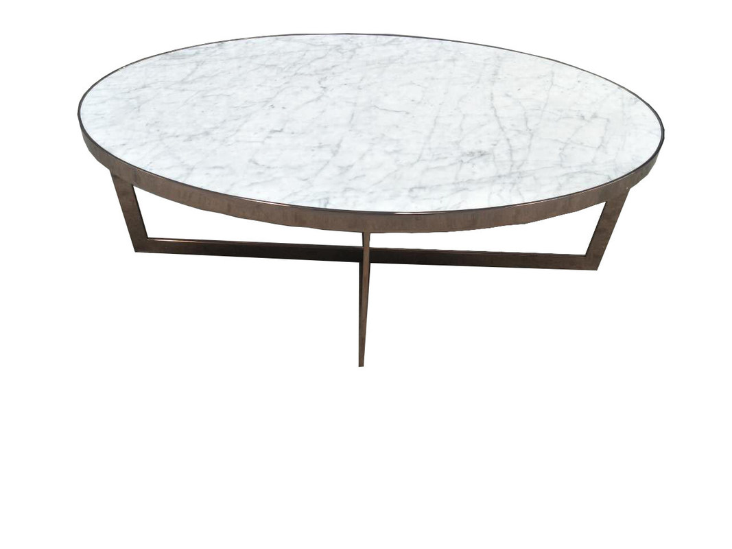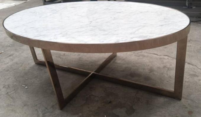 White stone top oval gold metal base hotel coffee table / side table / sofa table for hotel furniture